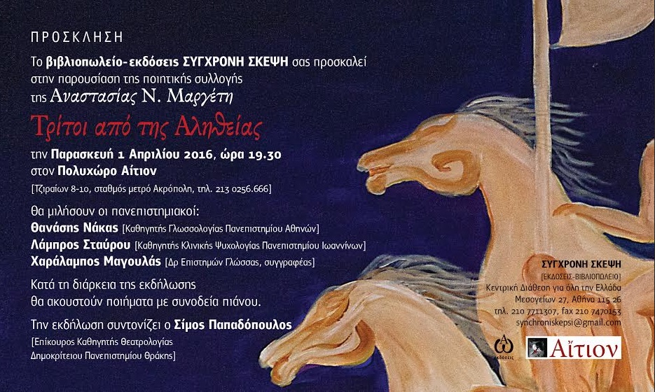 ΣΥΓΧΡΟΝΗ ΣΚΕΨΗ την Παρασκευή 1 Απριλίου 2016, ώρα 19.30